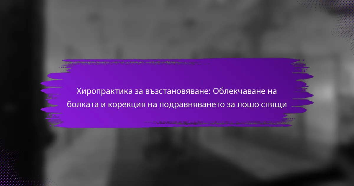 Хиропрактичната грижа е холистичен подход, фокусиран върху диагностицирането и лечението на мускулно-скелетни разстройства, предимно чрез ръчни корекции. Тя играе значителна роля в възстановяването, като облекчава болката и коригира проблемите с подравняването, което може да подобри общото благосъстояние и качеството на съня.