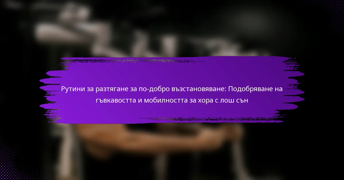 Рутините за разтягане могат значително да подобрят възстановяването при хора с лош сън, като подобряват гъвкавостта и подвижността, което от своя страна може да доведе до по-добро качество на съня. Включването на статични и динамични разтягания в рутината ви може да помогне за облекчаване на мускулното напрежение и насърчаване на релаксацията, което улеснява заспиването и задържането на съня.